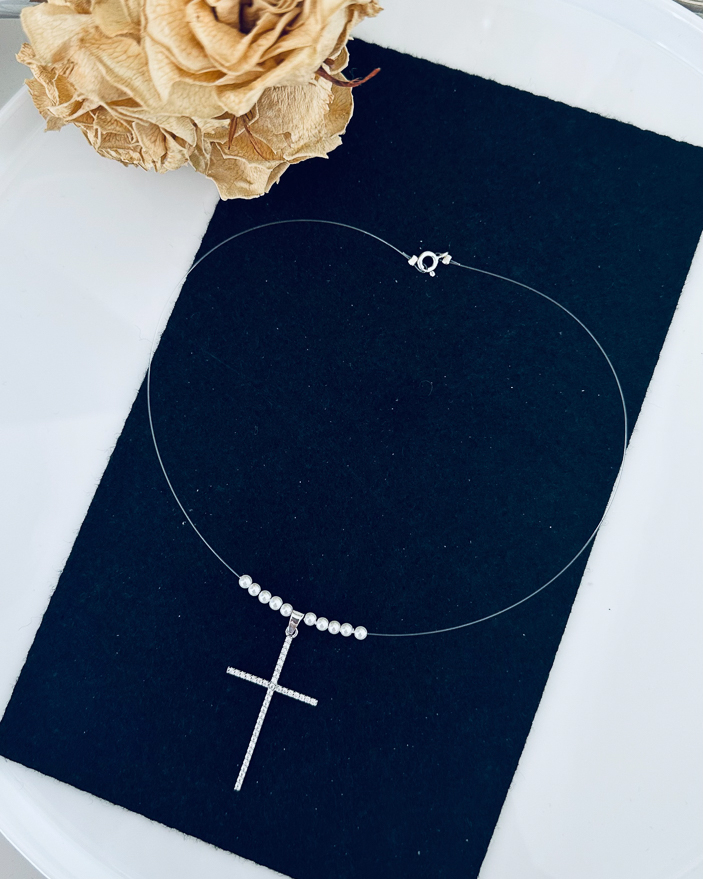Colier cu perlute si cruciulita din argint, gr2.5